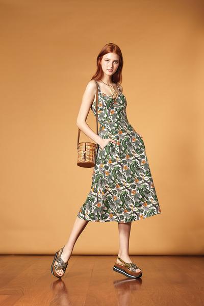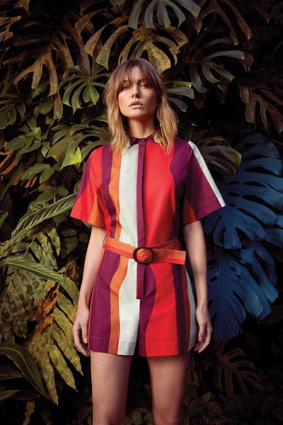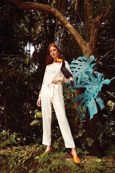 O resgate aos elementos naturais inspira ainda a escolha de materiais, como linho, palha e algodão. E a seda, sempre uma aposta da marca, imprime a fluidez, garantindo leveza e movimento nas produções. Na cartela de cores, vê-se os tons da floresta, numa paleta que contempla caju, terra, guaraná, açaí, vermelho uirapuru, rosa arara, azul ribeira, azul Xingu, verde floresta, verde graviola, bege oca e palha.