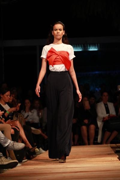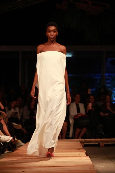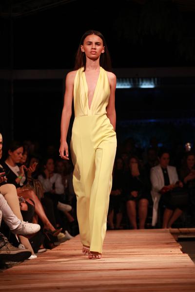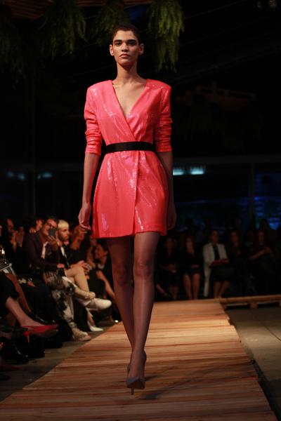 Na escolha dos tecidos, vemos a seda que traz movimento, assim como crepe, chiffon, zibeline, tricoline e organza. O couro, sempre presente em suas coleções, é a estrela de casacos, mini saias, bermudas e vestidos super ajustados. A paleta de cores vai do rosa flúor, até tons pastel como lavanda e amarelo.